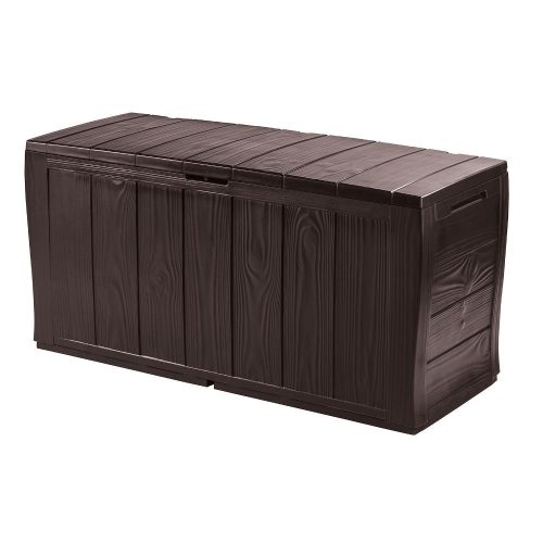 A Sherwood 270L-es kerti tároló előnyei az egyszerű forma, valamint a funkcionalitás és a gyors összeszerelés. Különböző kerti szerszámok tárolására szolgál, legyen szó akár lapátokról, permetezőkről, metszőollókról. A hagyományos színválasztéknak és a fát imitáló felületnek köszönhetően a tároló minden kertbe passzol.