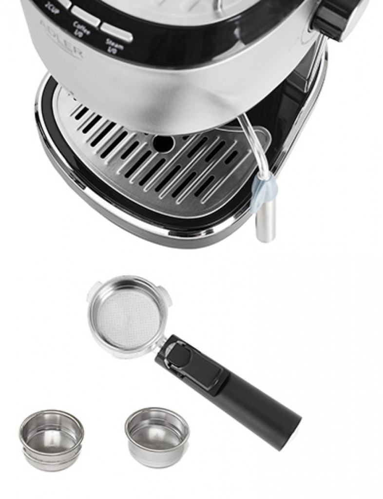 Az AD 4408 eszpresszógépet igényes kávébarátoknak tervezték, akik számára a kávé finom illata teszi a napot. Remek eszköznek bizonyul, amely otthon és a munkahelyen egyaránt használható minden olyan helyen, ahol élvezheti a frissen készített aromás kávét. A készülék nagy hatékonysága 850 W névleges teljesítményű.Kielégíti a legigényesebb felhasználókat is, akik nem akarnak sokáig várni kedvenc italukra. A beépített tejhabosító készüléknek köszönhetően könnyen elkészíthet egy cappuccino-t. Most már csak pihenhet és élvezheti a kellemes kávét. A termék elején dekoratív matrica található.