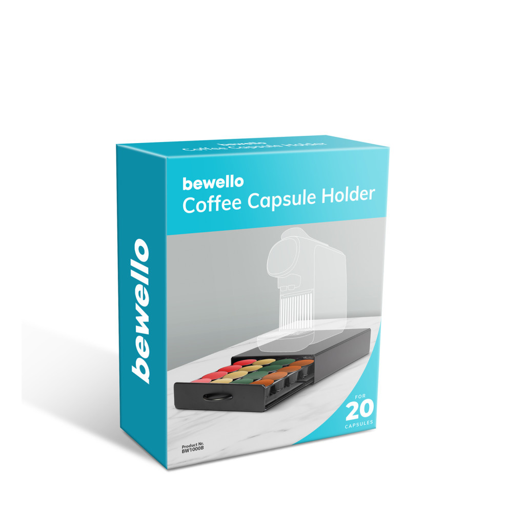 Bewello BW1000B Fém kávékapszula tartó - 20 db Dolce Gusto kapszulákhoz - 300 x 240 x 70 mm - matt fekete