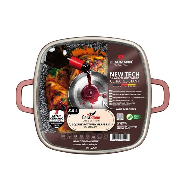 Blaumann BL-4091 Cerastone Collection 22 cm-es négyzet alakú edény fedővel
