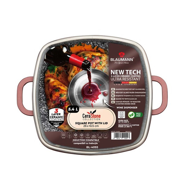 Blaumann BL-4093 5,4L Cerastone Collection 26 cm-es négyzet alakú edény fedővel