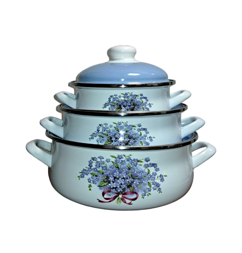 Nefelejcs árnyalt zománcozott kicsi lábas szett