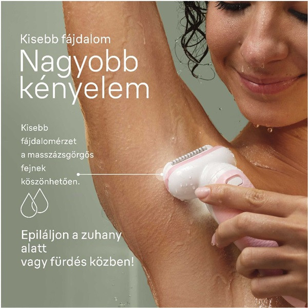 • Kisebb fájdalom és nagyobb kényelem: Nedvesen és szárazon is használható. Kíméletes epilálás fürdés vagy zuhanyzás közben.