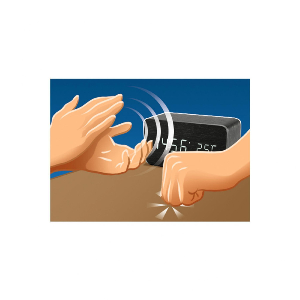 Az óra kijelzője tapsra vagy koppintásra aktiválható, így energiatakarékos módon használható. Ha a fény túl erős lenne éjszaka, a kijelző kikapcsolható, hogy zavartalan alvást biztosítson. A kijelzőn az idő, a dátum és a hőmérséklet (0–50°C) egyaránt megjelenik, így minden fontos információ azonnal elérhető.