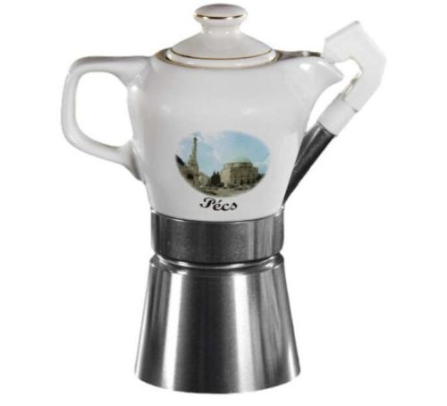 A Fatima 15557 kotyogós kávéfőző 2-4 csésze kávé elkészítésére alkalmas. Hagyományos kávéfőző, biztonsági szeleppel. Fedeles porcelán kiöntővel, színes képpel, felirattal. Fényezett, alsó alumíniumtest. Nem igényel elektromos áramot, gáztűzhelyen, elektromos főzőlapon is kitűnő aromájú eszpresszó kávé készíthető. Speciális tölcsérével 2 és 4 személyes adag is főzhető. Jellemzők: - 2-4 csésze kávé főzésére alkalmas - Minta: Pécs - Anyaga: alumínium, porcelán