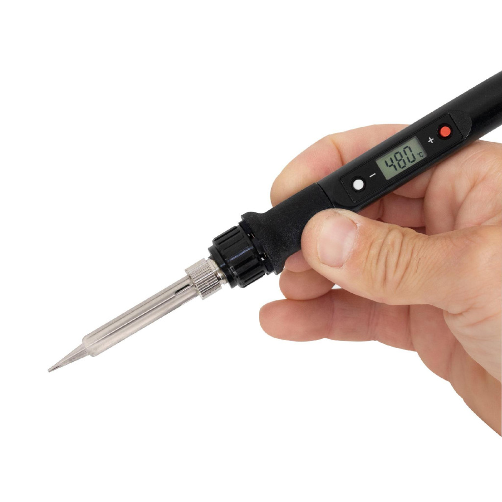 A páka markolatába épített LCD digitális kijelző lehetővé teszi a hőmérséklet könnyed beállítását, amely 180-480°C között szabadon szabályozható, így minden anyaghoz és feladathoz megtalálható az optimális hőmérséklet. A 230 V~ / 80 W teljesítmény révén gyors felfűtést és stabil hőtartást biztosít, miközben a kerámia fűtőelem hosszú élettartamot garantál. A beépített hőmérséklet-memória funkcióval a legutóbb használt beállítások könnyedén elérhetők, így időt takaríthat meg.