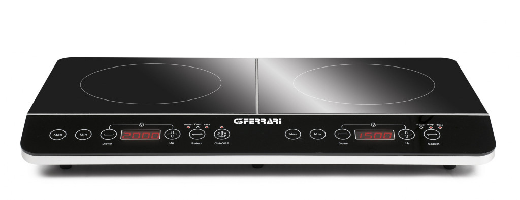 Profi, indukciós dupla főzőlap a G3Ferrari kínálatában, a HI-TECH CHEF G10047. Miért is jó az indukciós főzőlap? Egész egyszerűen azért mert mágneses elven a ráhelyezett edényt melegíti minden ponton egységesen úgy, hogy maga a főzőlap nem is melegszik. Előnye, hogy a legkisebb melegítési veszteség mellett a leghatékonyabb energia felhasználást biztosítja. Két különböző méretű főzőfelületet tartalmaz, melyek minimum 8cm-es és maximum 26 cm-es edénnyel használható. Esztétikus lakk fekete színű főzőlap digitális kijelzőkkel. A két főzőfelület teljesítménye és elméleti hőmérséklete egymástól függetlenül állítható mivel nem melegítik egymást az indukciós működés miatt.