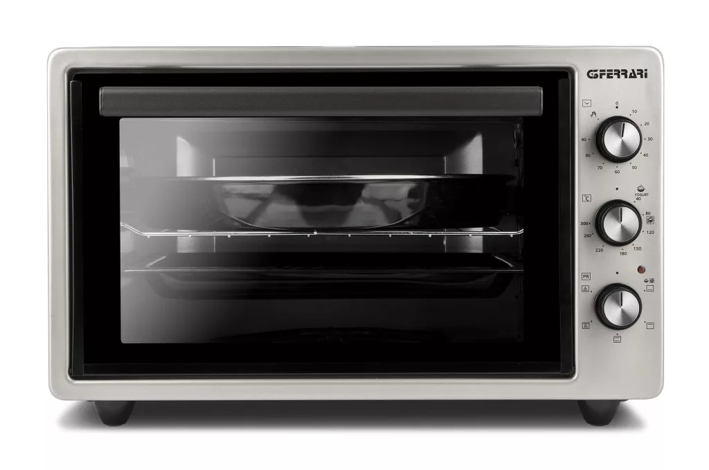 A G3Ferrari Rostó 37 többfunkciós, tágas, 37 literes sütőterével rövid idő alatt grillezhetünk, süthetünk benne ételt vagy süteményt. Akár 2 fogás egyidejű elkészítésének a lehetőségével, alacsony energiafelhasználással, könnyű szállíthatóságával, különféle helyzetekben hasznos otthonunkon belül és kívül egyaránt. A légkeverés lehetőséget ad, hogy rövidebb idő alatt elkészíthetőek legyenek az ételek. A 300 fokot is meghaladó belső hőmérséklet és a mellékelt speciális kerek serpenyő különösen alkalmassá teszi pizza és focaccia (olasz lepénykenyér) sütésére is, úgy, hogy a tészta ropogós lesz, de nem ég meg.