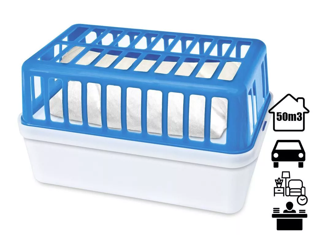 Az Invest H1000X2 Páramentesítő, segít szárazon és felesleges nedvességtől mentesen tartani a környezetet. Ideális irodába, autóba, konyhába, kamrába és minden olyan helyiségbe ahol túl magas a páratartalom. Specifikáció:Legfeljebb 50m3 területre tervezve.A betét súlya: 1000g.Hatás időtartama: 2-5 hónap.Szagtalan.Űrtartalom: 1100mlA készlet tartalma: 1 db abszorber + 2 db betétHatékony nedvességcsökkentés: Nedvességelnyelőnket kifejezetten arra tervezték, hogy hatékonyan csökkentse a levegő felesleges nedvességét, megelőzve a penész, gombák és kellemetlen szagok kialakulását.Hatékonyság: A betét nagy mennyiségű nedvességet képes felvenni, ami garantálja a helyiség megfelelő páratartalmának hosszú távú fenntartását.Könnyű használat:Az abszorber összerakása rendkívül egyszerű. Csak helyezze a betétet az abszorberbe, és tegye oda, ahol szüksége van rá. A betétek állapotának rendszeres ellenőrzése lehetővé teszi azok időben történő cseréjét, biztosítva a készülék folyamatos hatékonyságát.     Biztonság és ökológia: A nedvességelnyelő használata biztonságos, és nem tartalmaz káros vegyszereket. A betétek környezetbarátak, használat után biztonságosan kidobhatók. Alkalmazás:   Otthon: Ideális hálószobákban, fürdőszobákban, konyhákban, pincékben és egyéb helyiségekben, ahol a nedvesség problémát jelenthet.   Iroda: Fenntartja a megfelelő páratartalmat, ami fontos a munkakényelem és az irodai berendezések védelme szempontjából.   Autó: Hatékonyan csökkenti a nedvességet a jármű belsejében, megakadályozza az ablakok bepárásodását és a penészképződést.