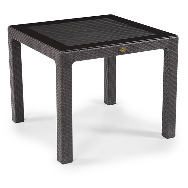 IRIS GF-820BR ORIGINAL barna műanyag kerti asztal rattan üveglappal 90x90cm