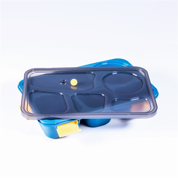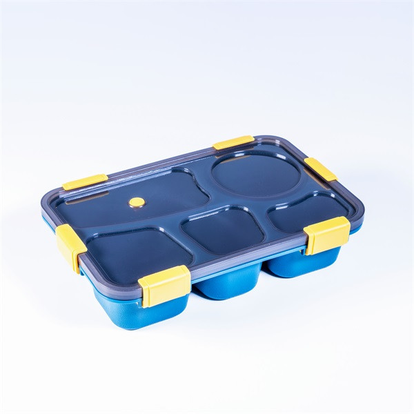Ételtároló doboz, több fogáshoz, 5 rekesszel. A tetőn szellőzőlyuk található mikróban való melegítéshez