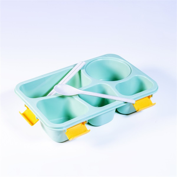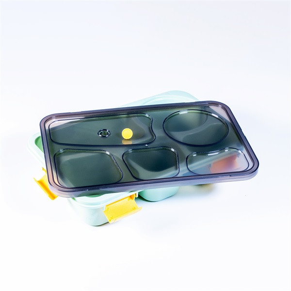Ételtároló doboz, több fogáshoz, 5 rekesszel. A tetőn szellőzőlyuk található mikróban való melegítéshez