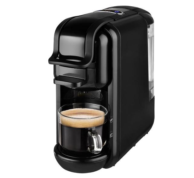 Teljesítmény 1450W-Kapacitás 0,6L-Átlátszó, kivehető víztartály-19 BAR nyomás-Készenlét jelző fény-Kompatibilis minden Nespresso,Dolce Gusto,Lavazza,Caffitaly és utángyártott kávékapszulával, őrőlt kávéval és pod-al-Energiatakarékos működés