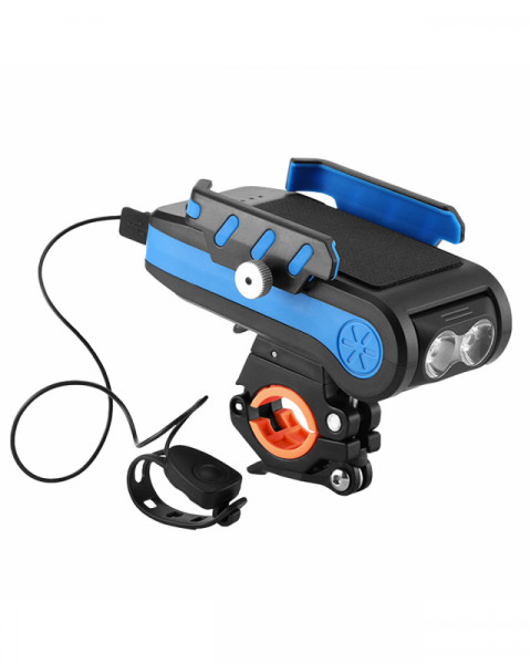 Az Orava ET3-E067-1 multifunkciós készülék minden kerékpáros számára praktikus segítőtárs. Egyesíti számos kiegészítő előnyeit, amelyeket kerékpárosként egyértelműen értékelni fog. Tölthető lámpaként, telefontartóként és -töltőként, valamint elektromos dudaként is szolgál. Nincs más dolga, mint otthon feltölteni a készüléket, felszerelni a bicikli kormányára, és kezdődhet is a biztonságos tekerés a kiváló fényerőnek, az erős hangnak és a csatlakoztatható mobiltelefonnak köszönhetően. Erőteljes fényszóróként 200 méteres távolságig világítja meg az utat 550 lumen fényerővel, három üzemmódban - erős fénnyel, gyengébb fénnyel és villogóként. Biztonságosan rögzítheti az 5,8-9 cm széles mobiltelefont, mely a powerbank funkciónak köszönhetően kerékpározás közben is töltődik. Az elektromos duda, amely akár 5 különböző hanggal működik, 130 dB-es hangerővel jelzi a környezetének, hogy félre kell állnia. Az Orava ET3-E067-1 könnyen felszerelhető és használható, és sok kerékpáros álomfelszerelése.