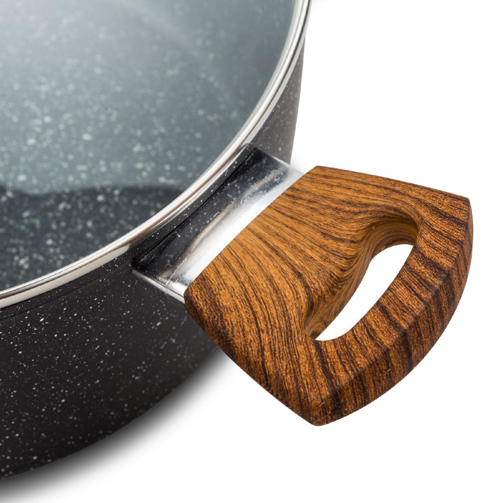 Nava 10-144-122 Nature tapadásmentes lábas, kőbevonattal, hőálló fogantyú, üvegfedő, 28 cm