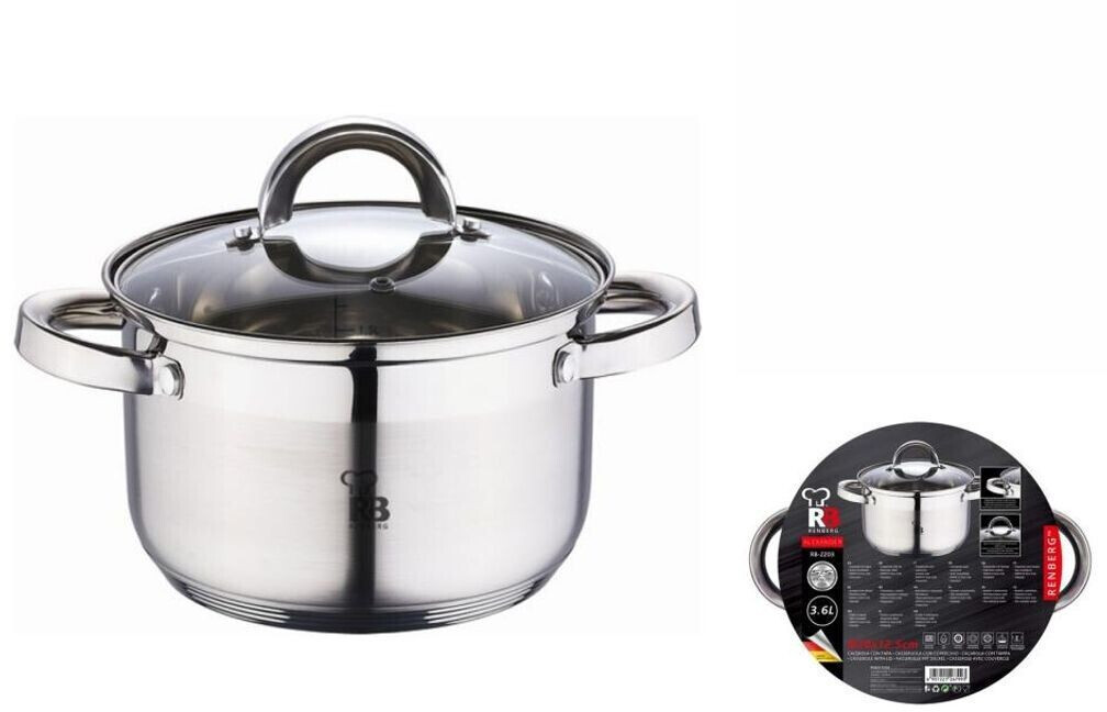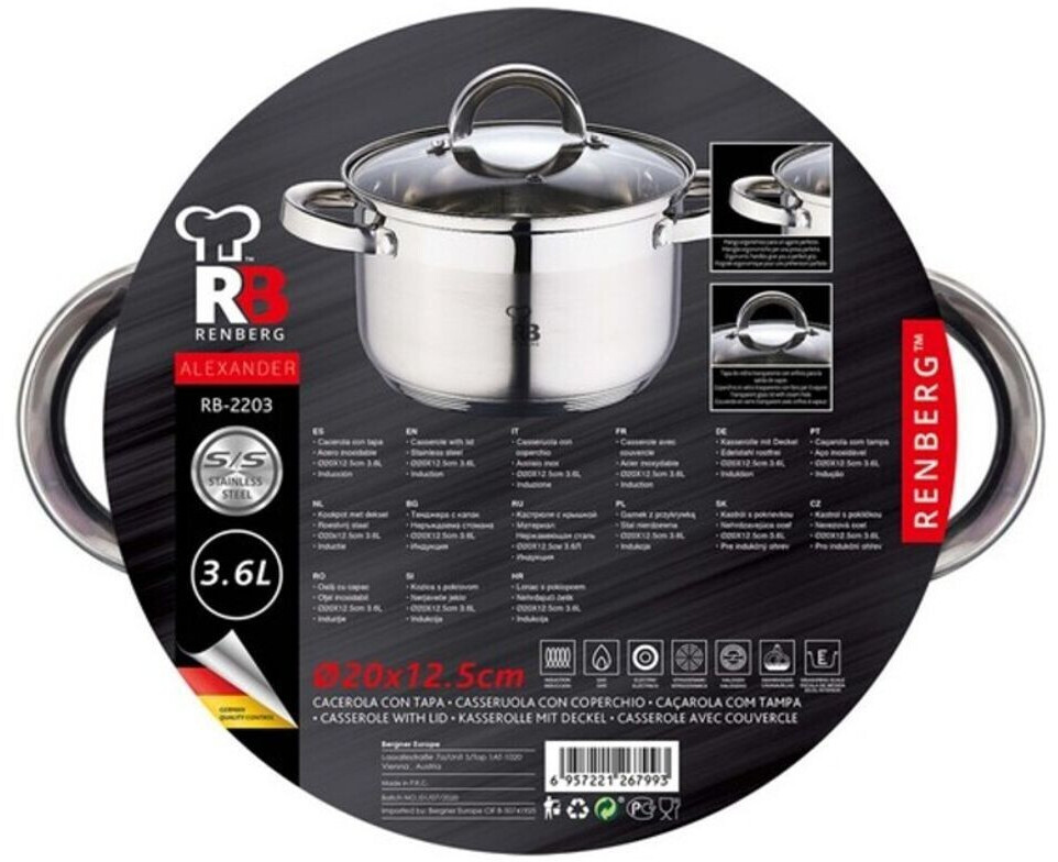 Renberg RB-2203 ALEXANDER rozsdamentes acél magas lábas 20X12,5CM 3,6L üvegfedővel