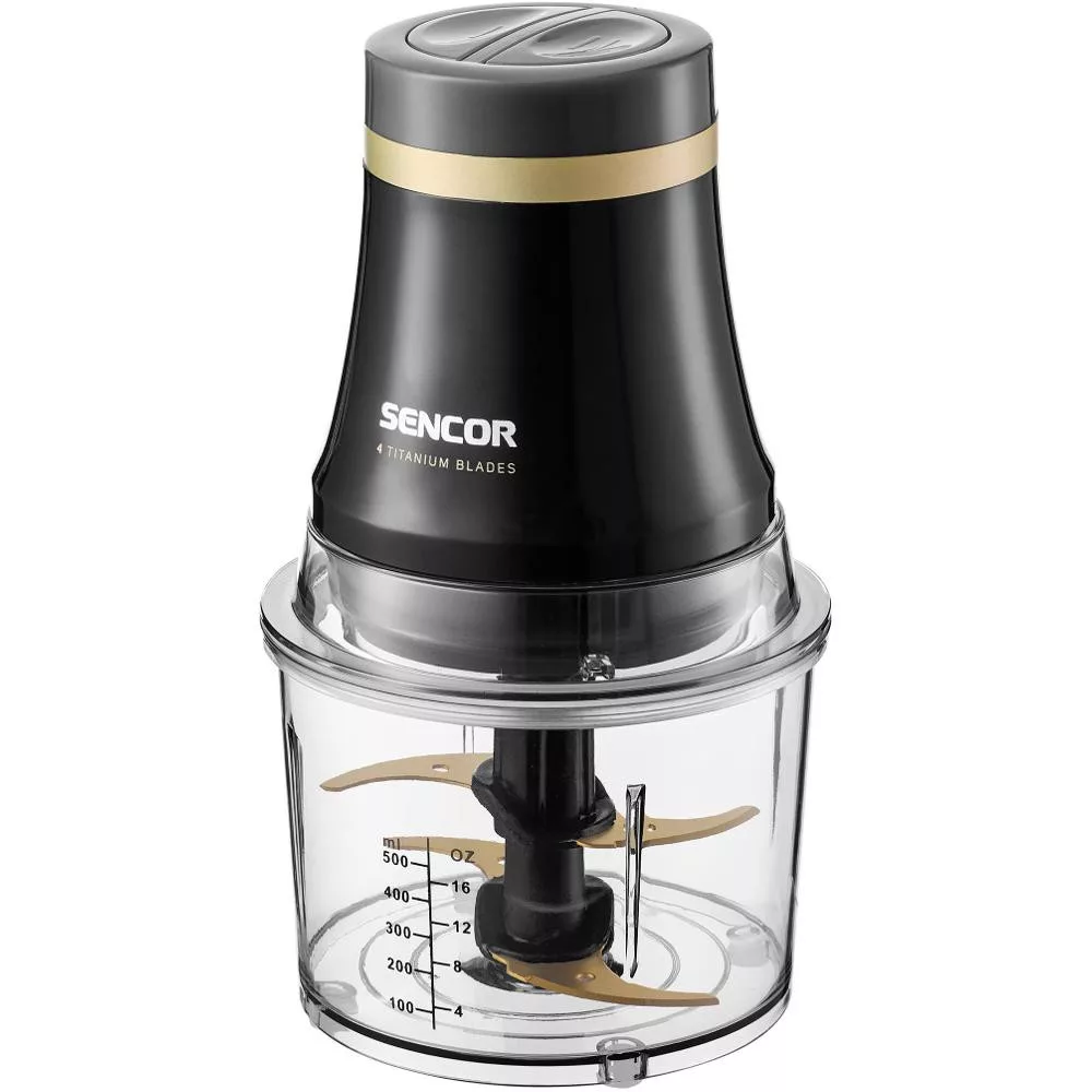 • 1 literes műanyag edény és 4 kés arany- és titánréteggel különböző ételaprítási módokhoz;