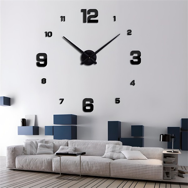 Modern megjelenésű falióra öntapadóa számokkal. Az óra felragasztható falra, tükörre, vagy más ferületre, így ideális a ház bármely helyiségébe. Az óra maximális átmérője 130 cm, így a ház legtávolabbi pontjáról is jól látható lesz. A nagy méretű mutatói elegáns megjelenést kölcsönöznek a helyiségnek.
