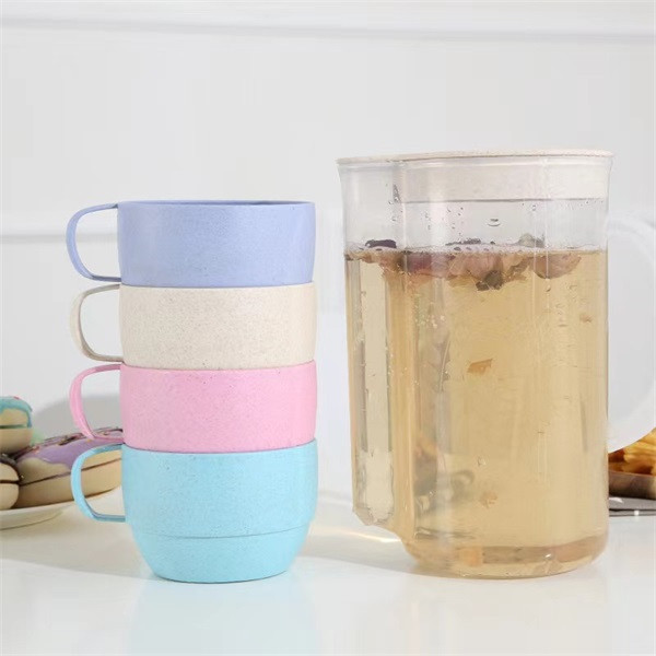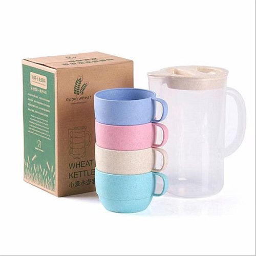 TOO KT-108 4db-os vegyes színekben búzaszalma műanyag bögre szett kancsóval, 13,5×20 cm
