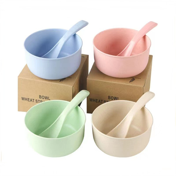 TOO KT-111-V bézs búzaszalma műanyag tál/kanál készlet, 11.3×6 cm