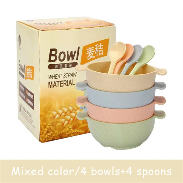 TOO KT-112-B vegyes színekben búzaszalma műanyag Baba tál/kanál készlet 4db, 15.5×12 cm