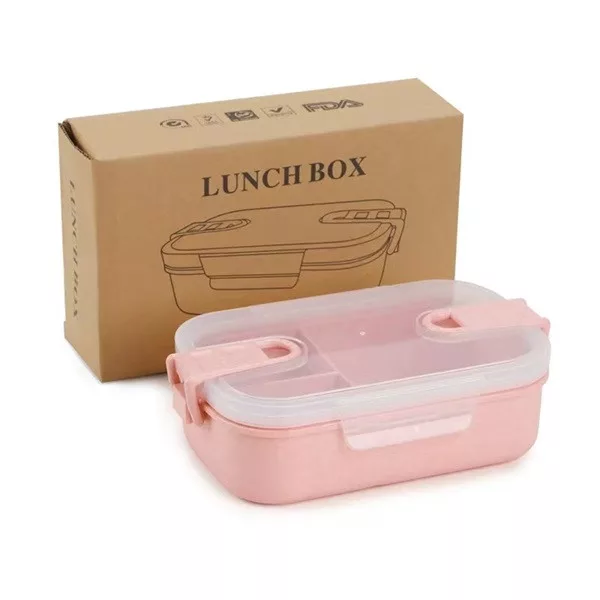 TOO KT-113-P rózsaszín búzaszalma műanyag ebédlő doboz, 6.3×13×21.8 cm