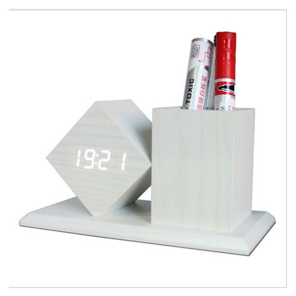 TOO PHC-330-W fehér digitális óra írószertartóval