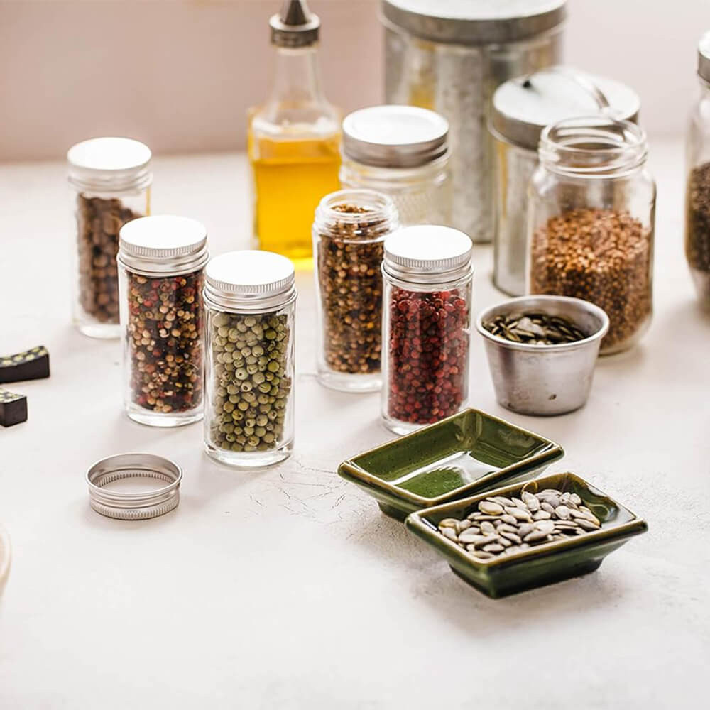 A csomagban található 18 db szórófejes fűszertartó üveg biztosítja, hogy minden fontos fűszernek saját helye legyen. A kompakt méretű üvegek kényelmesen tölthetők és újracímkézhetők a mellékelt írható matricákkal.