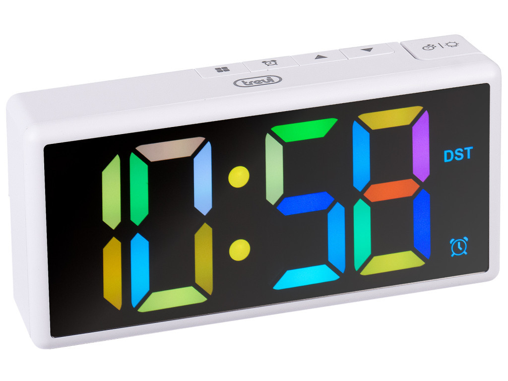 Trevi EC 886 White Digitális ébresztőóra nagy méretű, többszínű kijelzővel - fehér színben