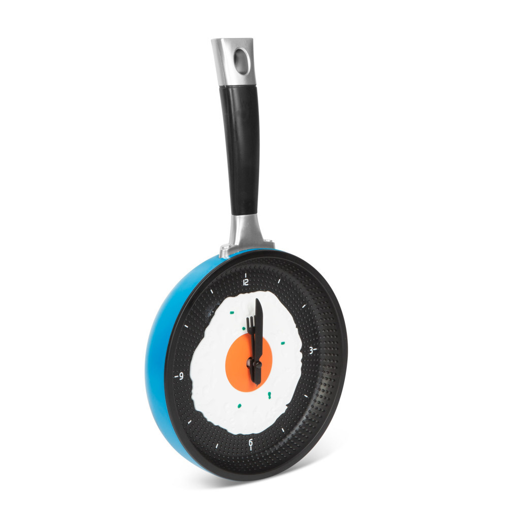 Egyetlen szakács konyhájából sem hiányozhat ez a serpenyőnek álcázott falióra. A design-os kivitelezésnek köszönhetően megtévesztően hasonlít a hagyományos serpenyőben készülő tükörtojásra. Az óra és percmutatót stílusosan villa és kés helyettesíti.