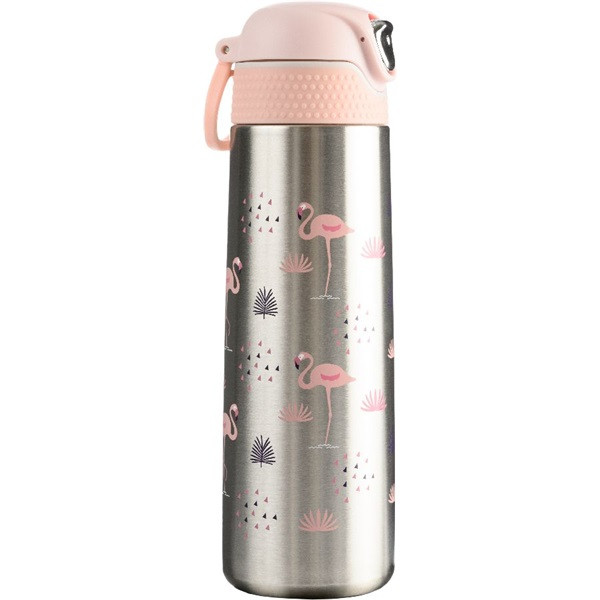 PEARLiTE SafeLOK: 420 ml-es ultra könnyű dupla falú rozsdamentes acél termosz flamingó mintával.