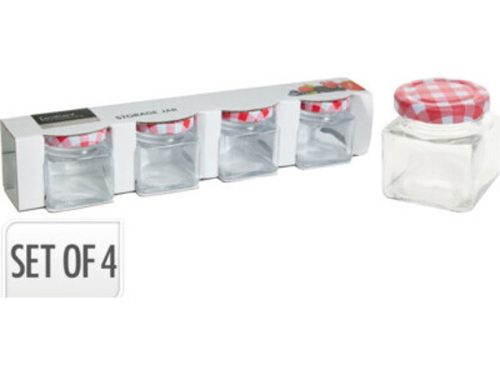 Family borcan pentru conserve rectangular metal cu capac 4 buc set 80ml m:5,4cm diam.:5cm