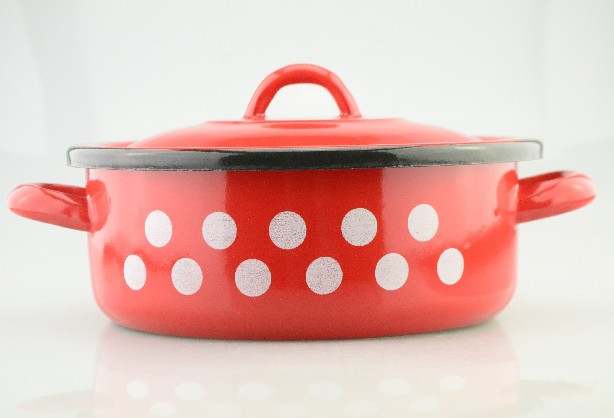 Family oală roșu email cu buline 1l
