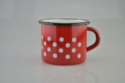 CANĂ ROȘU EMAIL ALB CU BULINE 0,5L
