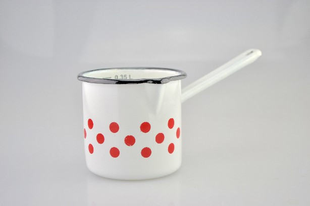 KÁVÉKIÖNTŐ FEHÉR ZOMÁNC PIROS PÖTTYÖS MÉRCÉS 0,4L