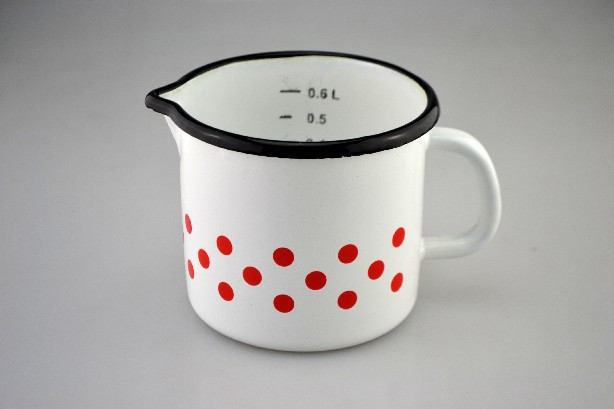 TURNĂTOR ALB EMAIL ROȘU CU BULINE 0,6L