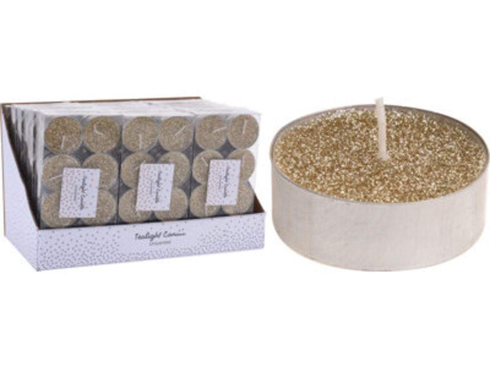 LUMÂNARE PASTILĂ DE CRĂCIUN AURIU GLITTERREL 8 buc 3,7X3,7X1,1CM