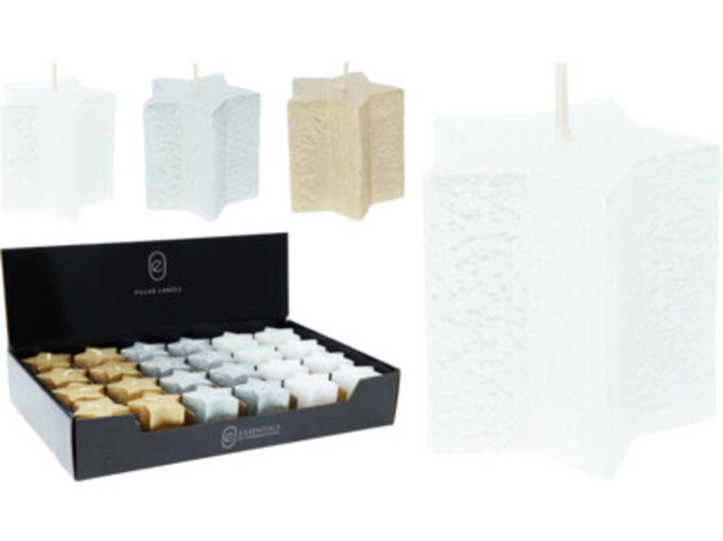ÎN FORMĂ DE STEA LUMÂNARE, 5X5CM, 60 GR. 3 CULOARE: AURIU, ARGINTIU ȘI ALB