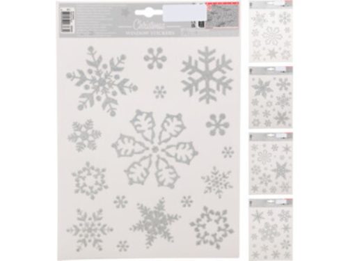 AUTOCOLANT DE FEREASTRĂ, POLIPROPILENĂ, 30X42CM, CULOARE: ARGINTIU, 4 FULG DE NEA CU MODEL