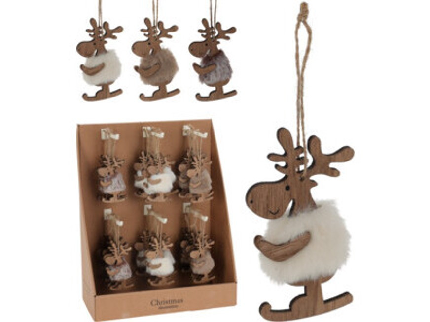 Family ren suspendat decorațiune, lemn și artificialszőrme, 110x64x10mm, 8 gr., szőrmés kabátta