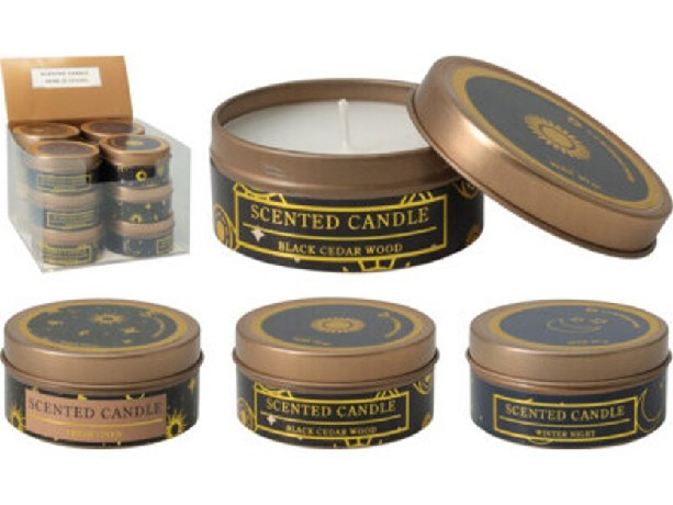 Family illatlumânare metalcutieban 6x3cm/40g, 12 buc/display 3 modele