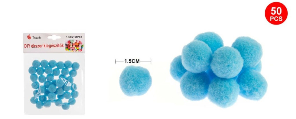 POMPOM ALBASTRU-DESCHIS 1,5CM 50 buc