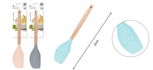 SPATULA SILICON + LEMN 32CM 3 culori