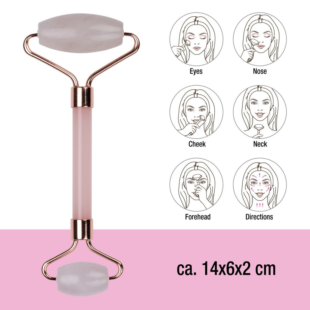 MASAJ FACIAL ROLLER PIATRĂ DE CUARȚ ROZ 14X6X2CM