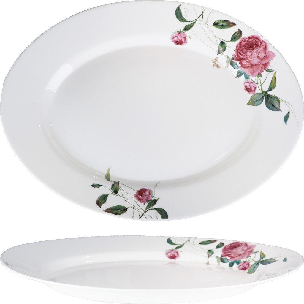TÁNYÉR OVÁLIS OPÁL 34,8X25,4CM RÓZSÁS