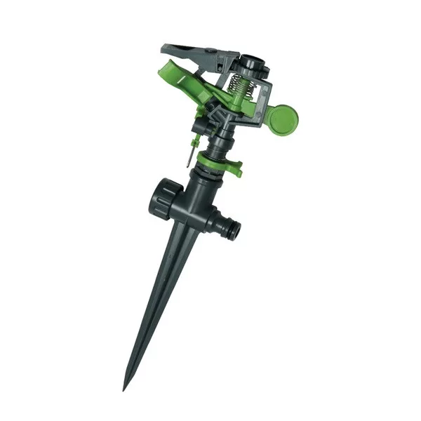 Daye leszúrható impulzus esőztető. Állítható locsolási szög 0-360 fok között. Műanyagból készült, szürke-zöld színű. Tökéletes választás pázsit és zöldségeskertek öntözéséhez.