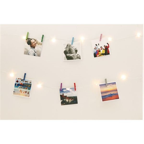 Csíptesd fel és világtsd meg fotóidat, rajzaidat, jegyzeteidet vagy bármilyen kedves emlékedet! Az exra erős fényfűzér 2,5 m hosszú, 10db színes csipeszt és 20db melegfehér fényű izzót tartalmaz (használatához 2db AA típusú elem szükséges, melyeket a gyári csomag nem tartalmaz).