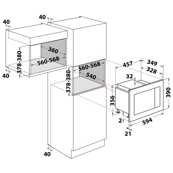 Dimarson DM-D70H20ESP-XT 1200W 21L inox beépíthető mikrohullámú sütő