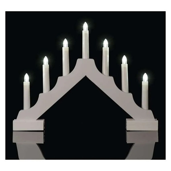 termék: gyertyatartó, fény színe: meleg fehér, méretek: 35 × 29 cm, használat: beltéri, időzítő, távvezérlő: nem, tápellátás típusa: elem (2× AA), fényforrás: LED, LED-ek száma: 7, fogyasztás: 0,42 W, kimeneti feszültség: 3 V DC, védettség: IP20, élettartam: 10 000 óra, anyag: fa, garancia-időszak: 2 év, értékesítési csomagolás: 1 db, doboz