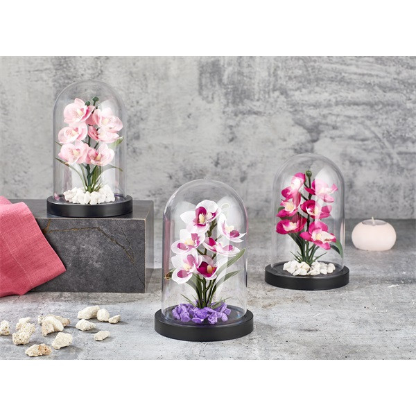 IRIS E5636 ORCHIDEA dekoráció művirággal búrában 11x18cm